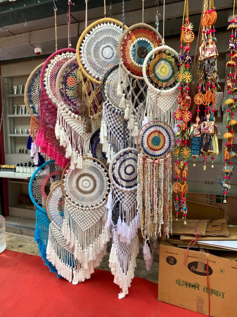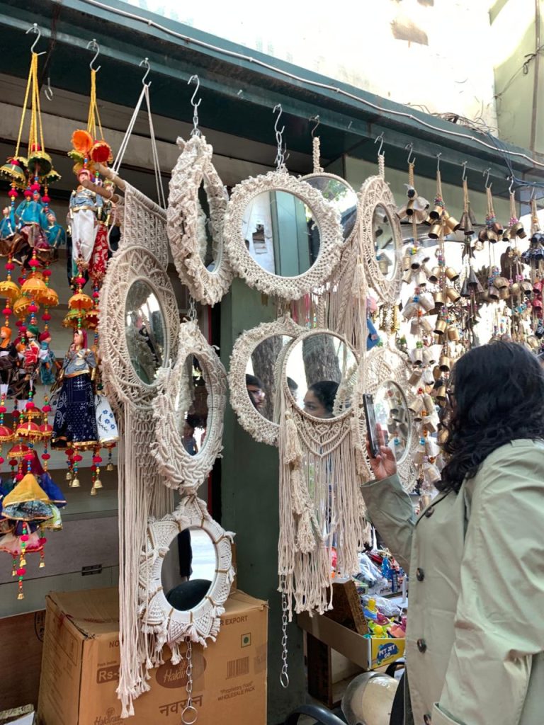 I found some really beautiful gift items like hanging mirrors and colourful hanging lamps made of brass, key rings, fridge magnets,  you can visit Monga Gift House if you are coming to Connaught Place for some souvenirs shopping.