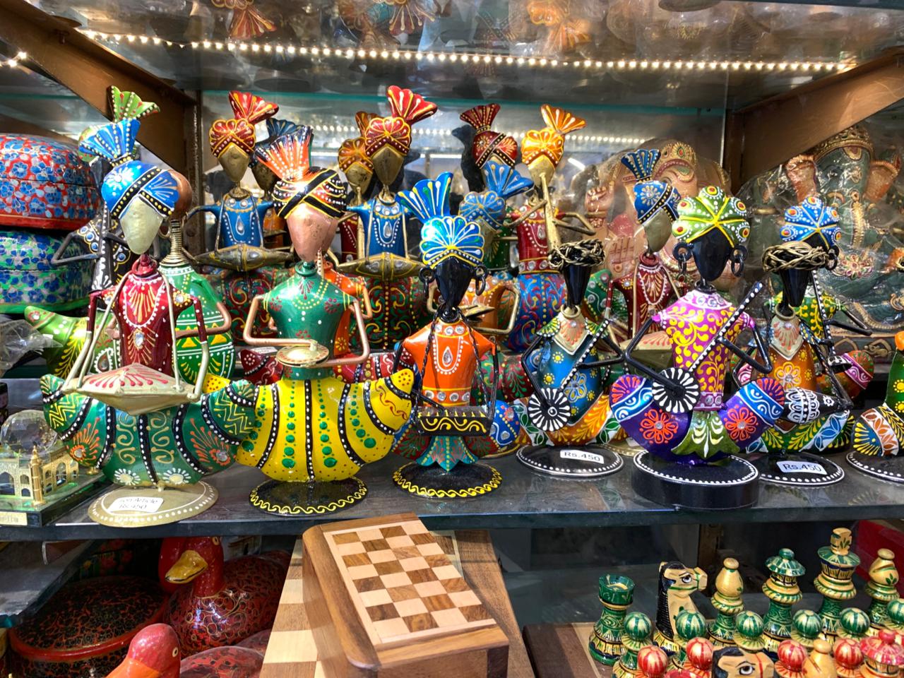 At Malik handicrafts you can get souvenirs, amazing chess boards, even tiny ones (the size of your hand). They have very wide brass collection of gods and wooden handicrafts.  The shop is so colourful from inside. They also have hanging decoration items like vintage clocks and clay dolls, which you can buy to decorate your home. Also, I liked their handcrafted chess boards a lot.